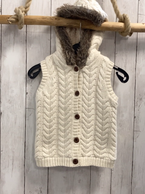 Max Studio Weste Gr. 104 creme mit goldenen Glitzerfädchen Kpauze mit Fellbund