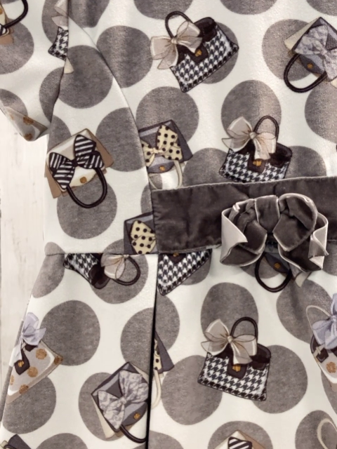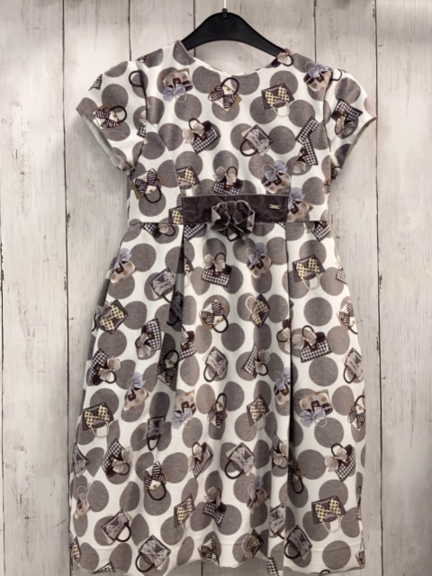 Mayoral Kleid Gr. 128 weiß Samt graue Punkte Taschen mit Schleifen