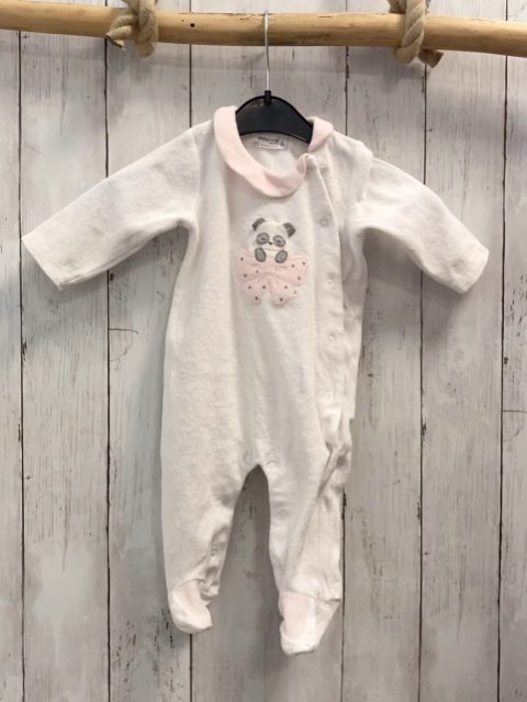 Mayoral Strampler Gr. 62 weiß Nicky rosa Kragen Pandabär mit Schleife