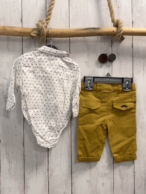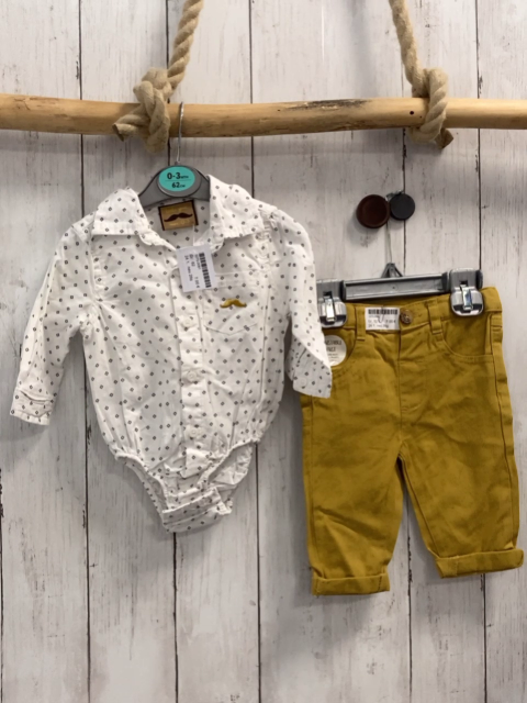 neu 2tlg Hose + Hemd Gr. 62 mais + weiß schwarze Rauten Hemd mit Bodyunterteil