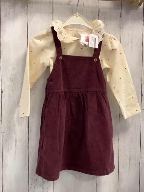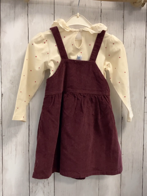 neu 2tlg Langarmshirt + Trägerrock Gr. 98 creme weinrote Punkte Rüschenkragen + weinrot Kord