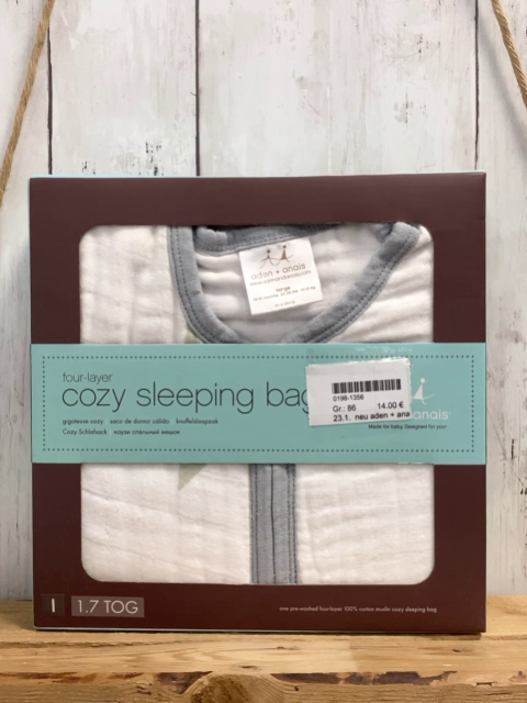 neu aden + anais Schlafsack Gr. 86 weiß beige Sterne hellblauer Bund musselin 1.1 TOG