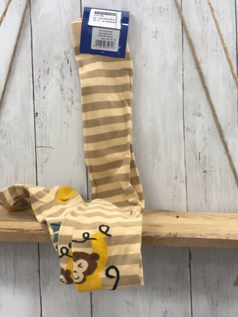 neu Babauba Strumpfhose Gr. 134/140 sand braun gestreift Affen