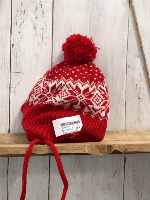 neu H&M Mütze + Handschuhe Gr. 86/92 rot weißes Muster Strick