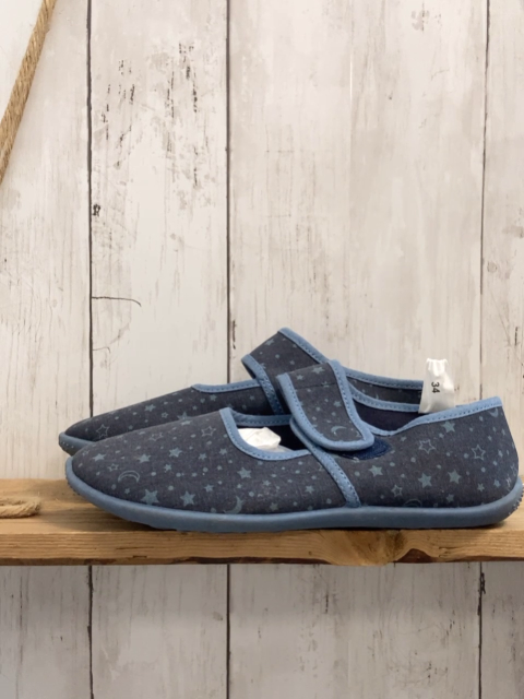 neu Hausschuhe Gr. 34 grau hellblauer Bund Mond Sterne