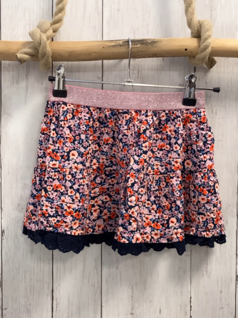 neu S´Oliver Rock Gr. 116 blau rosa rot blaue Blumen blauer Saum mit Lochstickerei