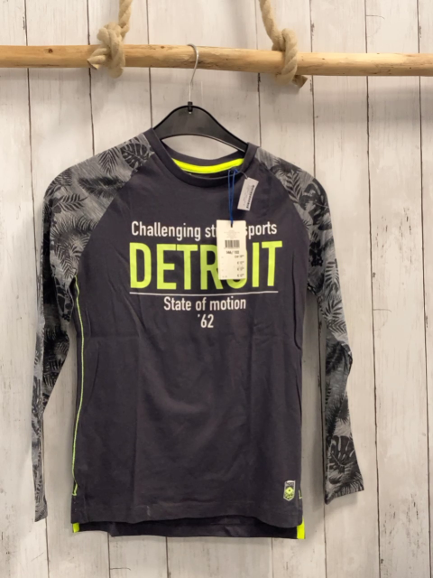 neu WE Langarmshirt Gr. 146/152 grau + hellgraaue Streifen am Ärmel mit Blättern NP 12,99 €