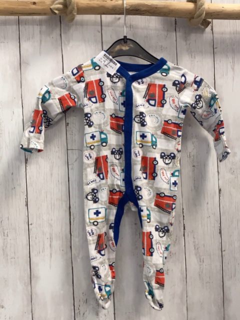 nutmeg Strampler Gr. 68 weiß Fahrzeuge blauer Bund