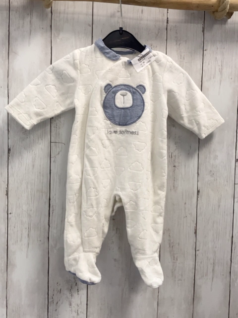 Oabibi Schlafanzug Gr. 56 weiß blauer Kragen + Bär Wolken