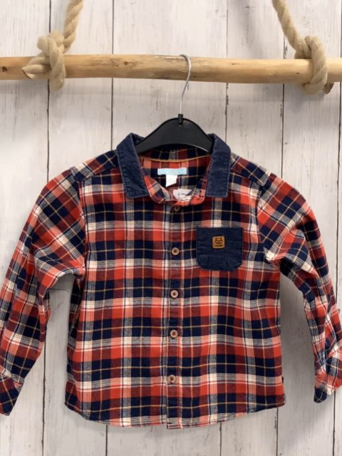Obaibi Hemd Gr. 98 rot blau ocker weiß kariert blauer Kordkrage