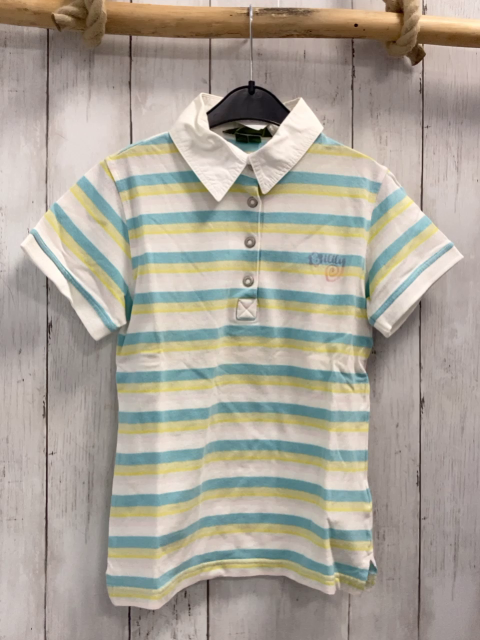 Oilily T-Shirt Gr. 146 weiß hellblau gelb rosa Streifen weißer Kragen
