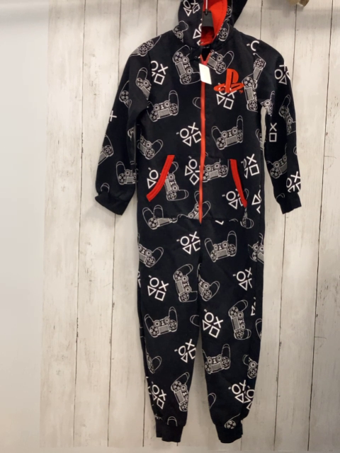Overall Gr. 128 schwarz weiße Spielkonsolen Schrift rote Reißverschlüsse Kapuze