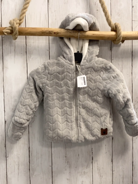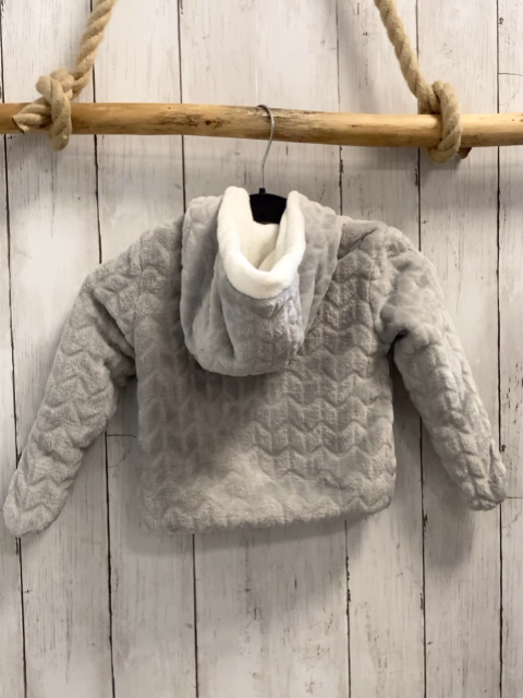 Plüschjacke Gr. 74 hellgrau Zacenstreifen Kapuze mit weißem Bund