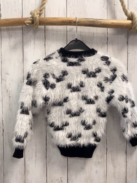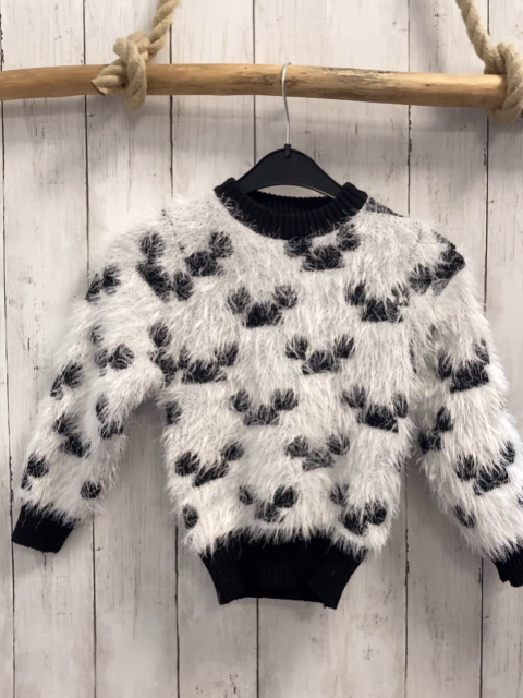 Pullover Gr. 104 weiß Strick flusig schwarze Schleifen + Bund