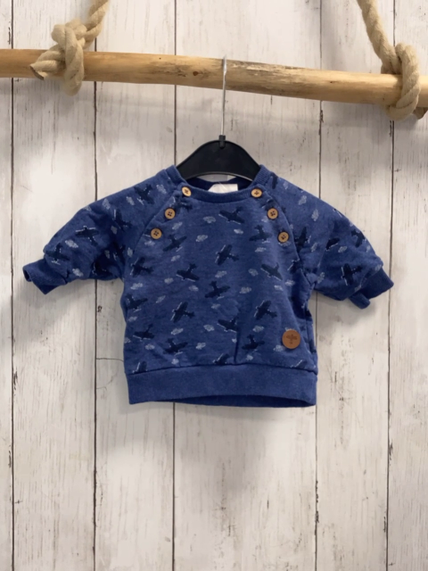 Pullover Gr. 56 blau dunkelgraue Flugzeuge weiße Wolken
