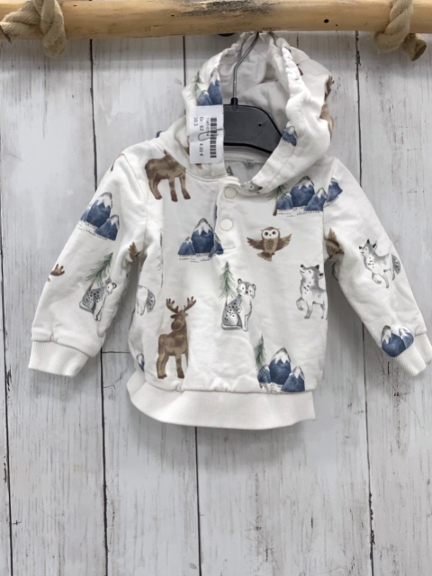 Pullover Gr. 62 weiß Waldtiere Tannen Kapuze