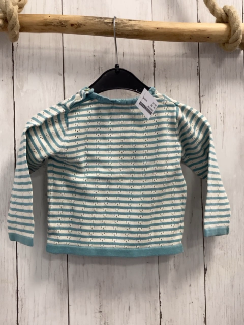 Pullover Gr. 80 weiß türkis Streifen Lochmuster