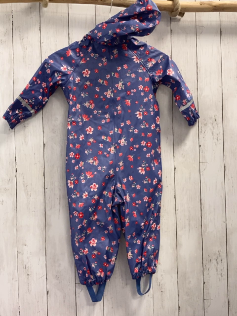 Regenoverall Gr. 92 blau Blumen rosa Reißverschluss