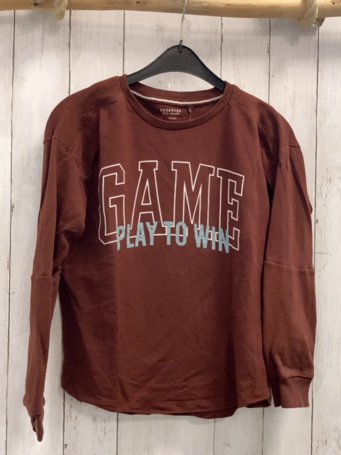 Reserved Pullover Gr. 146 braun Schrift Ärmel mit Rippen