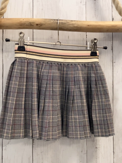 Rock Gr. 98 grau beige weinrot kariert + bunter Streifebund mit golden Glitzer