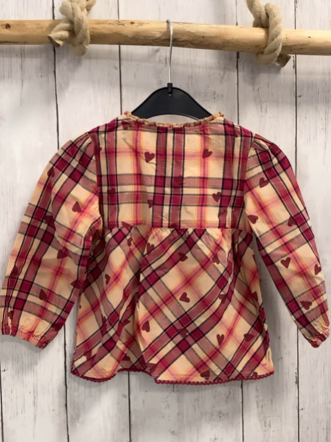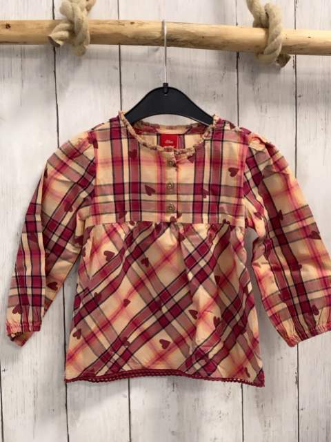S´Oliver Bluse Gr. 86 beige beere schwarz gelb kariert weinrote Herzen