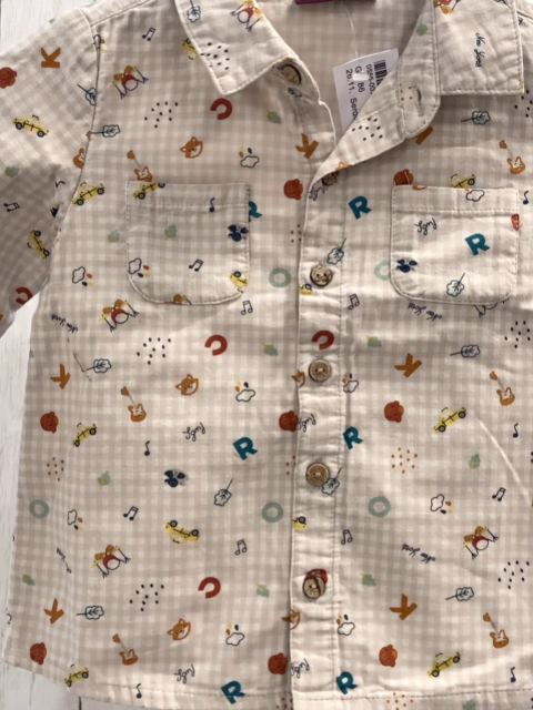 Sergent Major Hemd Gr. 86 weiß beige kariert Tierköpfe Buchstaben