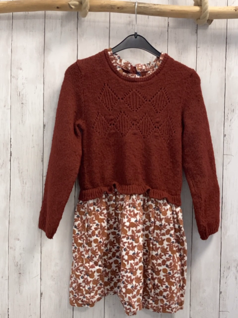 Sergent Major Kleid Gr. 128 braunes Strickoberteil mit Lochmuster weißer Rock mit rost Blättern