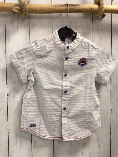 Sergent Major Sommerhemd Gr. 104 weiß grau blaue Streifen Aufnäher