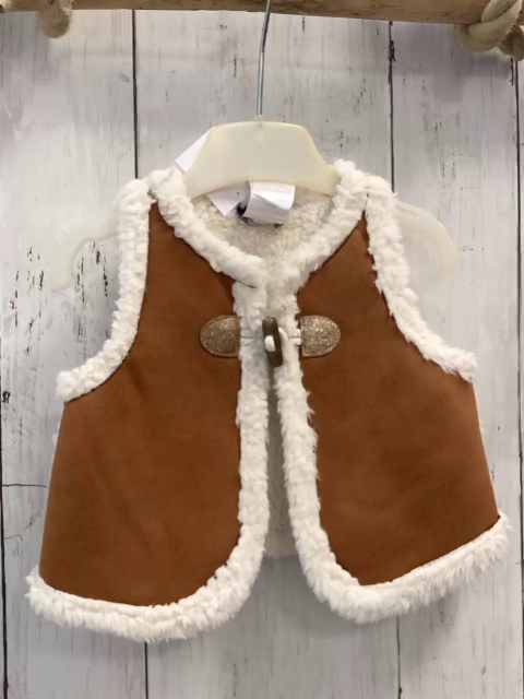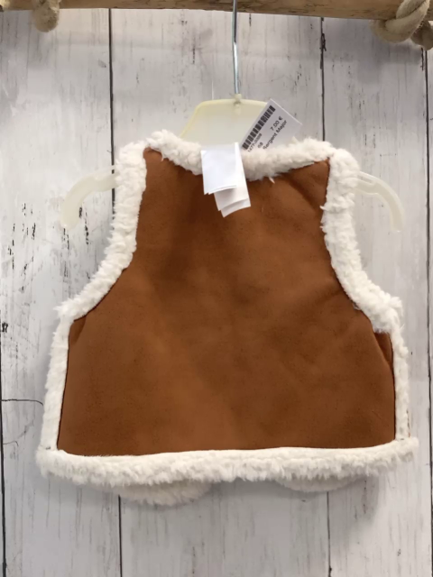 Sergent Major Weste Gr. 68 braun Waschleder + weißer Plüschbund + weißes Plüschfutter