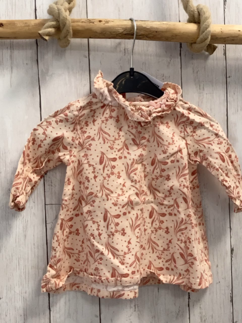 Shabby Chic Kleid Gr. 68 creme altrosa Blätter Punkte Rüschenbund