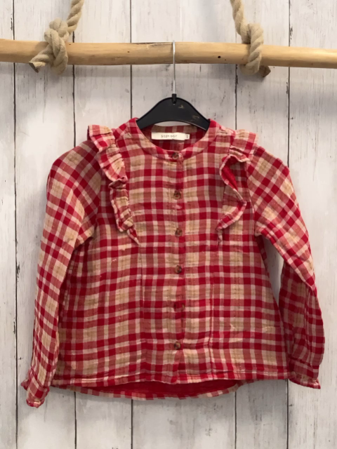 Sissy-Boy Bluse Gr. 110 rot beige golden Glitzer kariert Rüschen