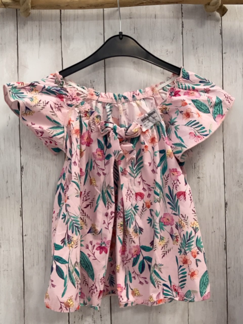 Sommerbluse Gr. 128 rosa bunte Blumen + grüne Blätter