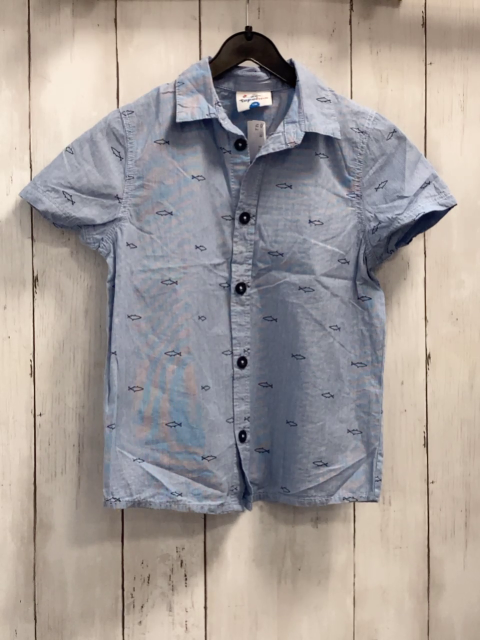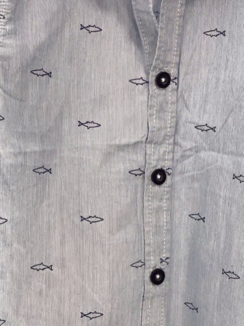 Sommerhemd Gr. 116 hellblau weiße Streifen schwarze Haie