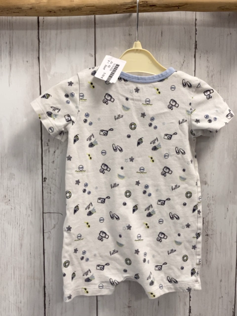 Steiff Playsuit Gr. 62 weiß kleine Bilder Bärenkopf hellblauer Bund