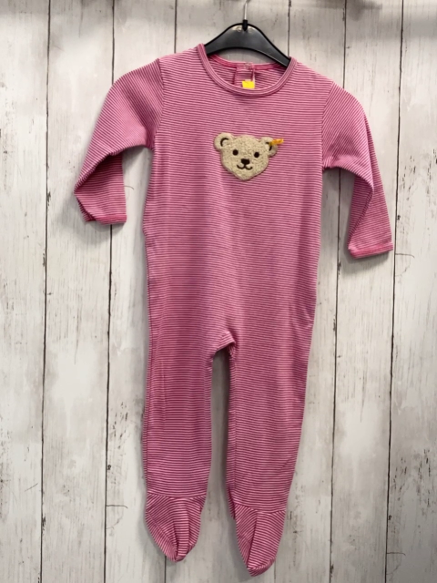 Steiff Schlafanzug Gr. 86 pink hellgraue Strefen Plüschbärenkopf