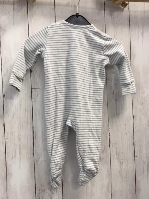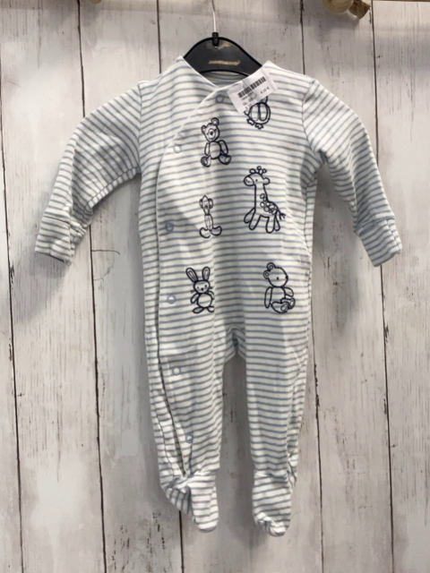 Strampler Gr. 68 blau weiß gestreift gestickte Tiere