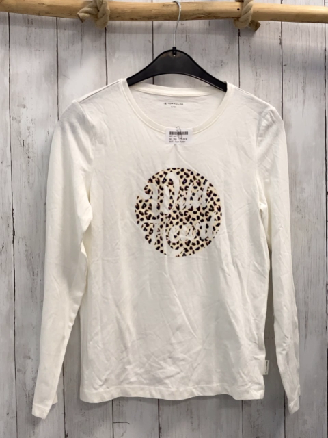 Tom Tailor Langarmshirt Gr. 164 weiß beige schwarz brauner Kreis mit Schrift