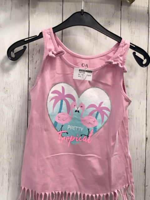 Top Gr. 134 rosa glänzendes Herz mit Flamingos + Palmen Fransensaum