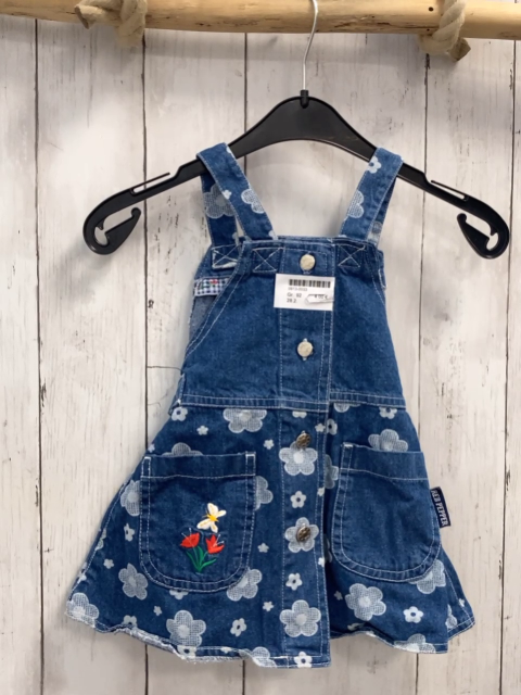 Trägerrock Gr. 92 blau Jeans weiße Blumen