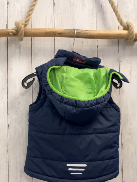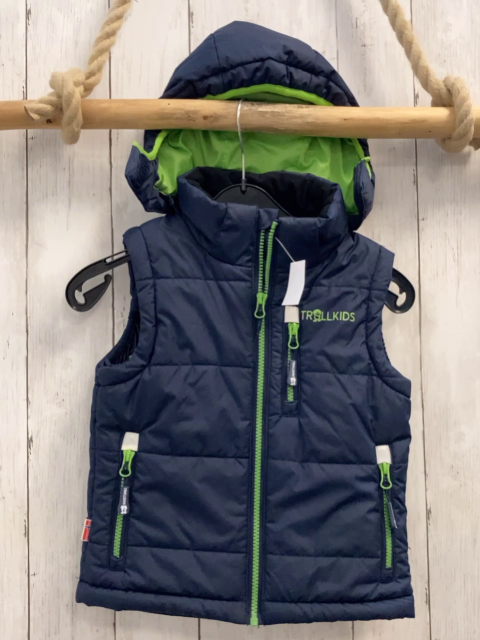 Trollkids Weste Gr. 110 blau Kapuze hellgrüne Reißverschlüsse