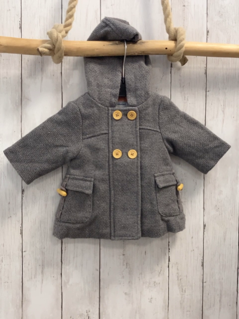 Vertbaudet Jacke Gr. 62 hellgrau Kapuze 2 Reihen Knöpfe