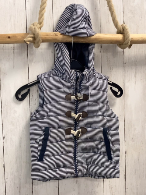 Weste Gr. 86 blau weiße Streifen Kapuze braune Applikationen + Knebelknöpfe