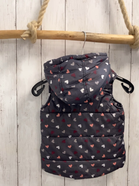 Weste Gr. 98 grau bunte Herzen Kapuze rosa Fleecefutter
