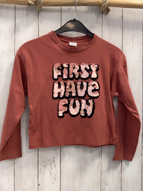 Zara Langarmshirt Gr. 140 rost rosa Pailettenschrift mit schwarzem Rand