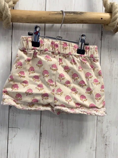 Zara Shorts Gr. 80 beige Blumen Fransensaum Gummizugbund