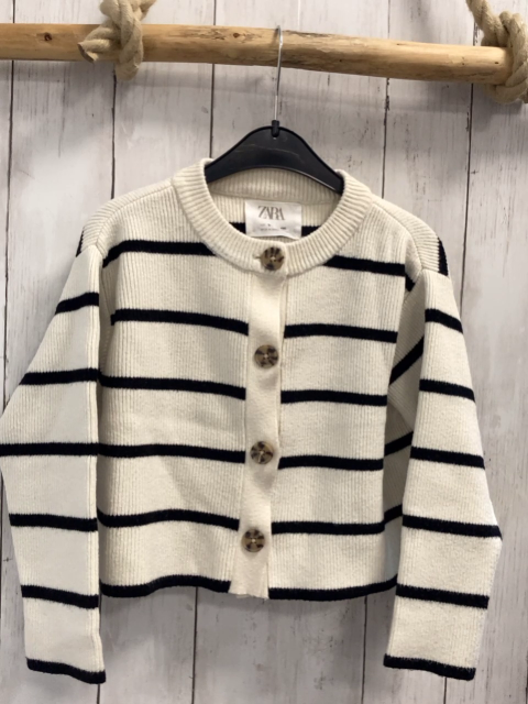 Zara Strickjacke Gr. 116 weiß schwarze Streifen Rippen